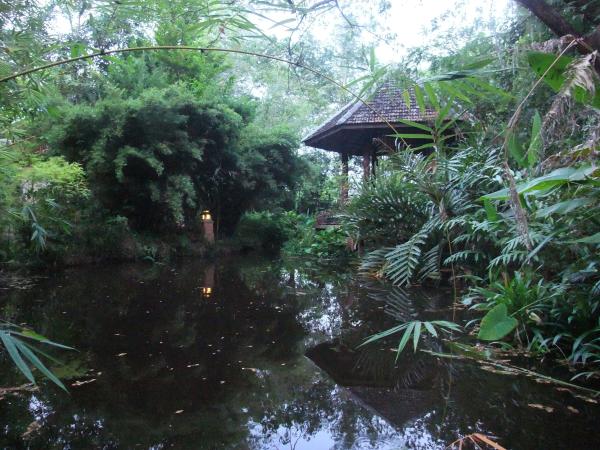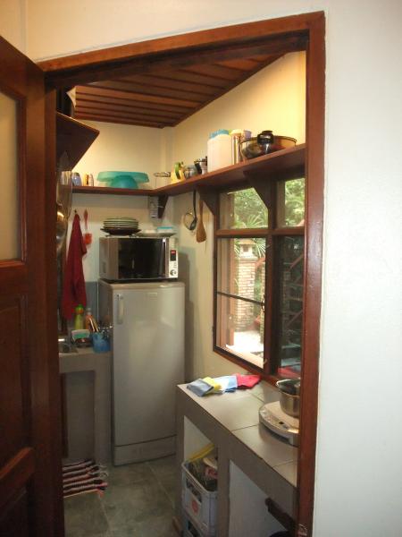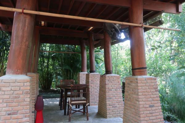 Location: 10 mi (15 km) northeast of the city of Chiang Mai, or 11 mi (18 km) to the Tha Phae Gate, or 4 mi (7 km) to the Doi Saket district center, in non-touristy countryside, between two villages, within a fenced, quiet and secure 1.7 acre (7000 m², or 4 rai ) private property with park-like natural garden and a few houses. Size of private areas: Living area in the house (bungalow with pavilion) 517 ft² (48 m²), plus open spaced roofed living area (pavilion) about 320 ft² (30 m²), plus exterior living area (terraces, garden), about 2,150 ft² (200 m²). Buildings: A unit comprising bungalow and pavilion, fully equipped (partly furnished on request). The bungalow, comprising 4 rooms: 1 bedroom (with queen-size bed with mattress 5 × 6.5 ft = 152 × 200 cm, air-conditioner and ceiling fan, room safe, built-in wardrobe); living and dining room (with sitting area, ceiling fan); kitchen, fully equipped (with electric stove with 1 hob, sink, 2-door refrigerator, microwave, hot water kettle); en-suite bathroom (with Western type toilet, hand-wash basin, and electric hot shower). The pavilion, a wooden stilt-house, comprising 2 rooms: 1 room which can be equipped with a laptop friendly workspace on request, or used as a temporary bedroom (with wall fan, hand-wash basin, urinal); bathroom on the ground floor (with Western type toilet, hand-wash basin, electric hot shower, and washing machine); roofed veranda (with kitchenette, refrigerator) on the upper floor. Out-door living area, comprising: Roofed veranda on the upper floor of the pavilion, and under the pavilion (with wall fan), deck adjacent to the living room of the bungalow, all with nice views over the natural pond and garden. Shared: Park-like natural community garden, with pathways, sitting areas, canals, bridges, ponds, tall trees and bamboos, wild edible plants and fruit trees, most of the area can be explored and used for recreation. The natural swimming pond, 300 ft (90 m) long and 23 ft (7 m) deep, is accessible for the community, and can also be used for boating and fishing on request. Facilities: Free and unlimited community Wi-Fi Internet throughout the property, private Wi-Fi or LAN at extra cost (details on request), tap water (drinkable), electricity 220 V, parking (1 car or 1 motorbike) within the property (roofed car port on request), using the boat on the big pond, using barbecue equipment in the garden, using the roofed community seating area with LAN connection. Food: Self-catering. Delivery services for groceries and ready meals (Thai, Western) are available. A few food stalls serving Thai dishes, and small grocery stores for daily needs are within walking distance. Transportation: Public transportation from the street adjacent to the property, fare to Chiang Mai about 60 Baht. App-based transport service from Grab (GrabCar, GrabBike) available. Private transportation by renting a car, motorbike, scooter or bicycle, details on request. Pets: Baan Sammi is a pet-friendly property. 1 male outdoor dog and currently approximately 5 outdoor cats live on the property. However, our dog does not allow other dogs in its territory, no matter whether male or female, large or small, and another new cat is not welcomed by either our cats or our dog. Therefore, unfortunately, guests with their own pets cannot be accommodated. Suitability: This home is best suitable for a single person or a couple, who likes nature and an inspiring tranquil environment, e.g. the elderly, retirees, writers, artists, digital nomads, for people on long-stay vacation and sabbatical leave, for employees working in the east, northeast or southeast of Chiang Mai. Rental rates: Monthly rent 9,800 Baht (for 1-2 people), all utility charges included, except electricity which is charged extra. Security deposit equals 1-month rent. Minimum rental commitment 1 year. Rental availability: from now, please inquire! Viewing: Possible at any day during daytime, from 9 a.m. to 5 p.m., but please announce your visit at least 1 day in advance. The entire property and the exterior of all rental houses can be viewed. The interior of a house can only be viewed if it is not currently rented (the interior of Dillenia Home can be inspected from mid-July 2022) . There are photos of the interior and exterior of the houses in the photo albums. Online photo album (over 100 photos, some videos, maps, and a floor plan): Link on request. Exact location: Search on Google Maps for "Baan Sammi", or use the coordinates 18.8352, 99.1077 to locate the main entrance gate to the property. The first contact by email or Facebook Messenger, please. An attempt to get a first(!) contact via phone will most likely be unsuccessful.